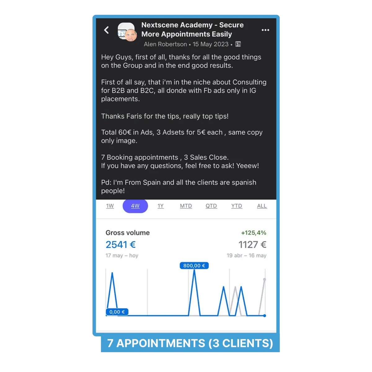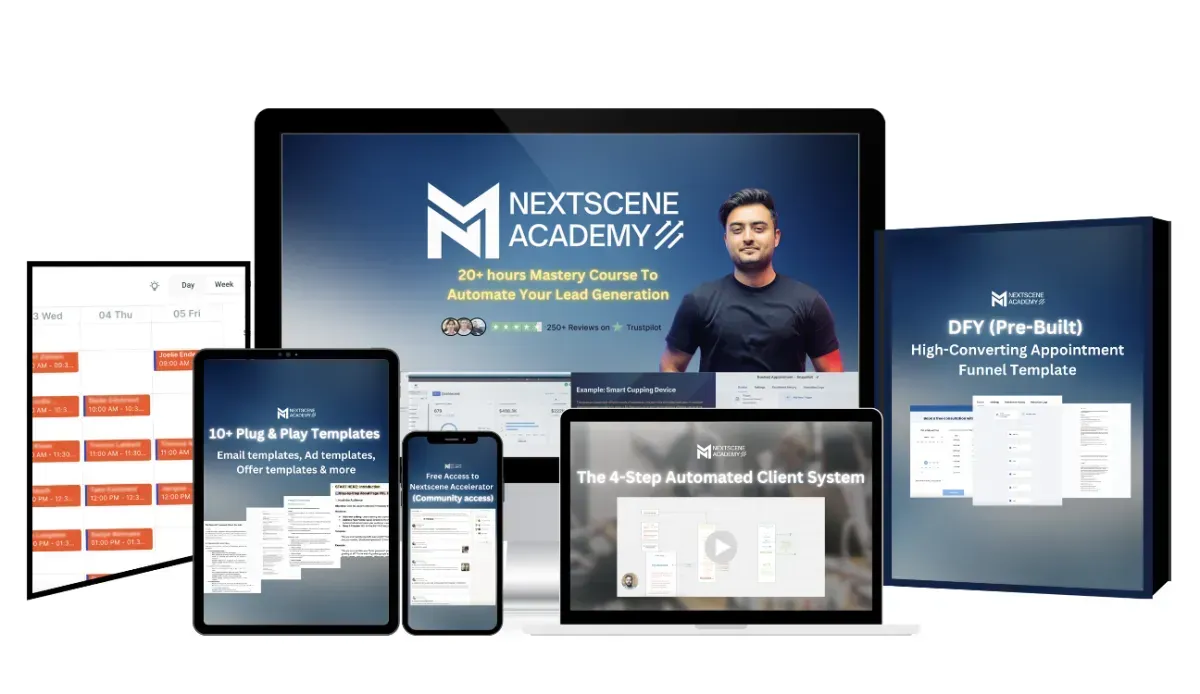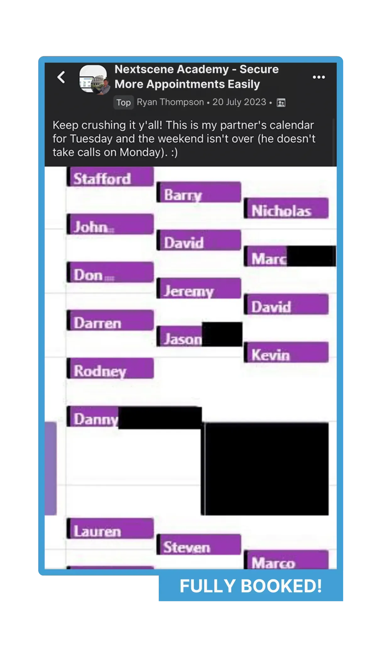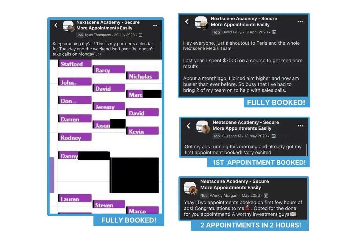 Nextscene Academy is a course and a systematic approach to get hundreds of high-quality appointments every single month. It is not a fad that comes and goes. Nextscene Academy is about the system to get actual appointments booked into your calendar, rather than spending your time "chasing clients".