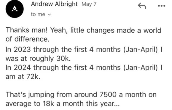 "Using his techniques, I was able to secure 4 clients brining in $2,500 in revenue..."